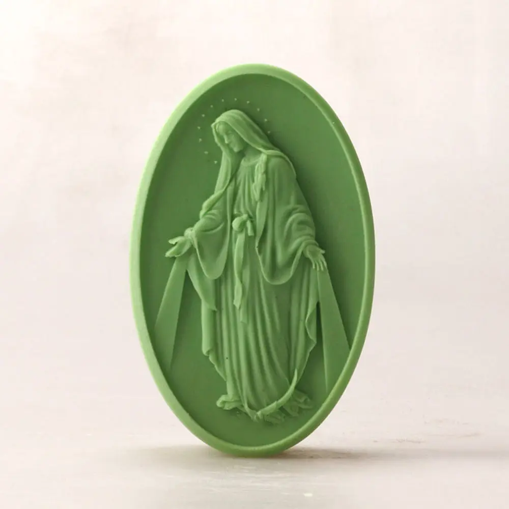 BEST SELLER Grainrain The Virgin Mary Handcrafted Soap Molds Silicone Oval DIY Craft Candle Mold