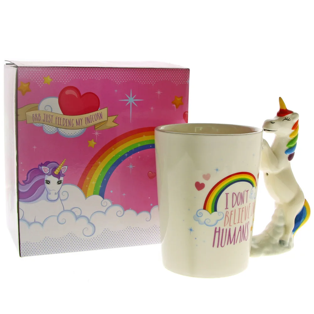 1Piece I DON'T BELIEVE HUMANS 3D Unicorn Mugs Tea Milk Coffee Cups And Mugs Drinkware Cute Quirky R
