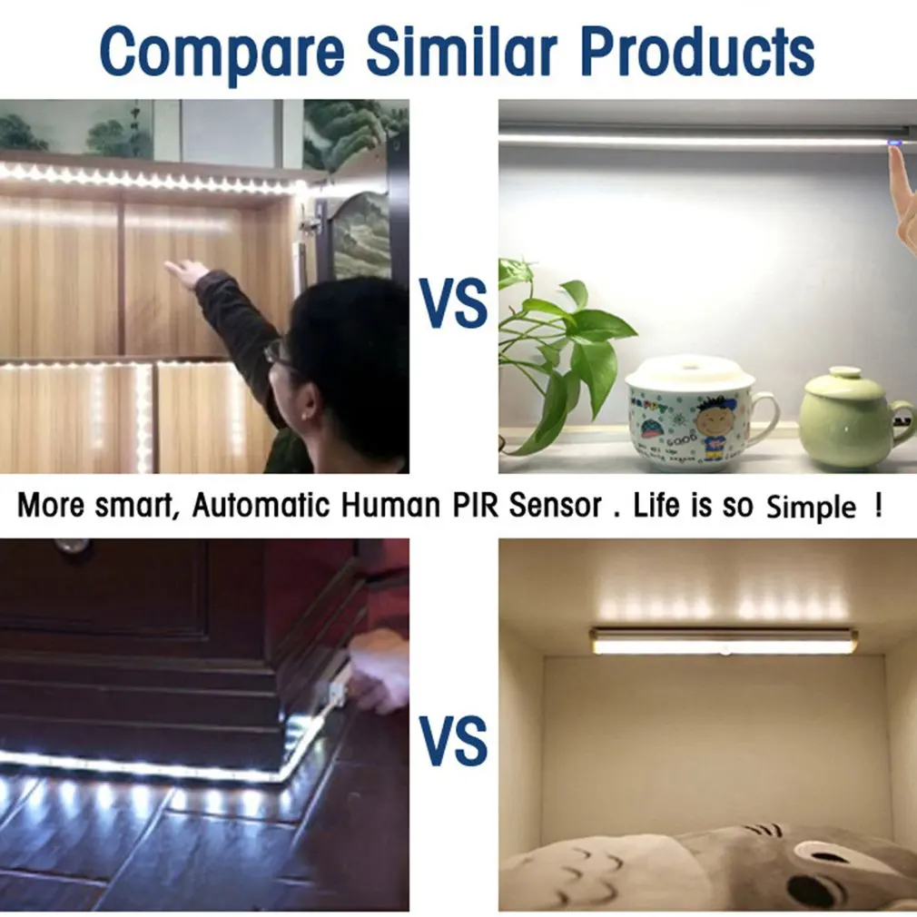 HIGH QUALITY ICOCO Sensing Night Light LED Human Motion Sensor Body LED Closet Lights Wall Lamp with Magnetic Be